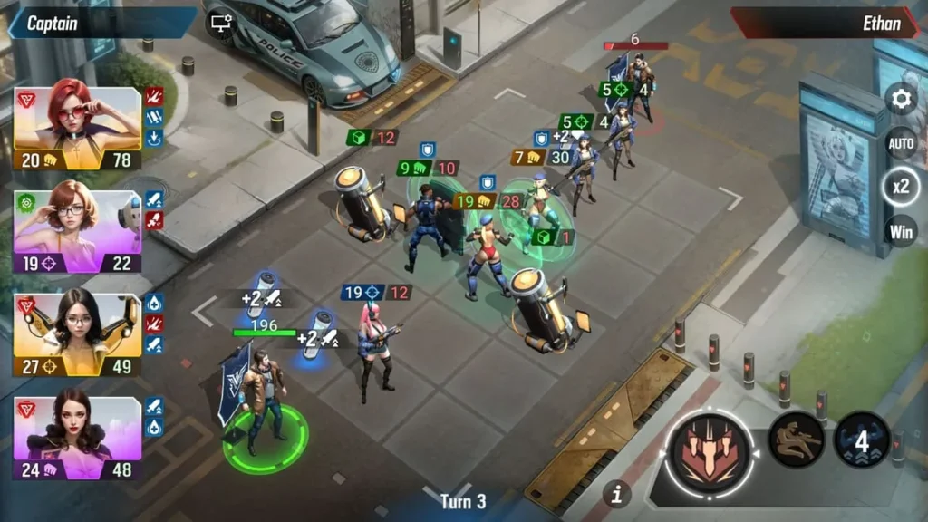 2. Deploy into turn-based battles, using a deck of ability cards unique to your team composition.